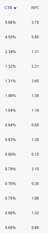 Если серьезно, результат сильно зависит от вашего портфолио. Одно дело клики с доменов с мусоротрафом, другое - по ключам типа "строительство", "одежда", "авто" посмотрел с утра статсы выборочно, первая колонка - CTR, вторая - стоимость в рублях за клик. для примера: Как видите, "вилка" и стоимости кликов, и CTR сильно прыгает в зависимости от качества трафа. Что же касается запаркованных доменов на форму обратной связи, не на рекламу. Вот тут мы вам однозначно сообщаем о росте офферов практически на любом портфолио. Так что вэлком :) |