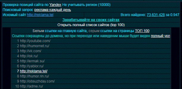 ![]() GOOGLE 1 МЕСТО "Реклама каждый день" ![]() 1. Главный фон 2. Главный баннер 3. Твиттерная реклама (условия на сайте) 4. Ссылка на 1 месяц 5. Картиная галерея 6. Ютуб 7. Описание и документы в PDF файлах 8. Продажа с сайта 9. другое ... Условия по запросу Форумчанам скидка указана в оффере