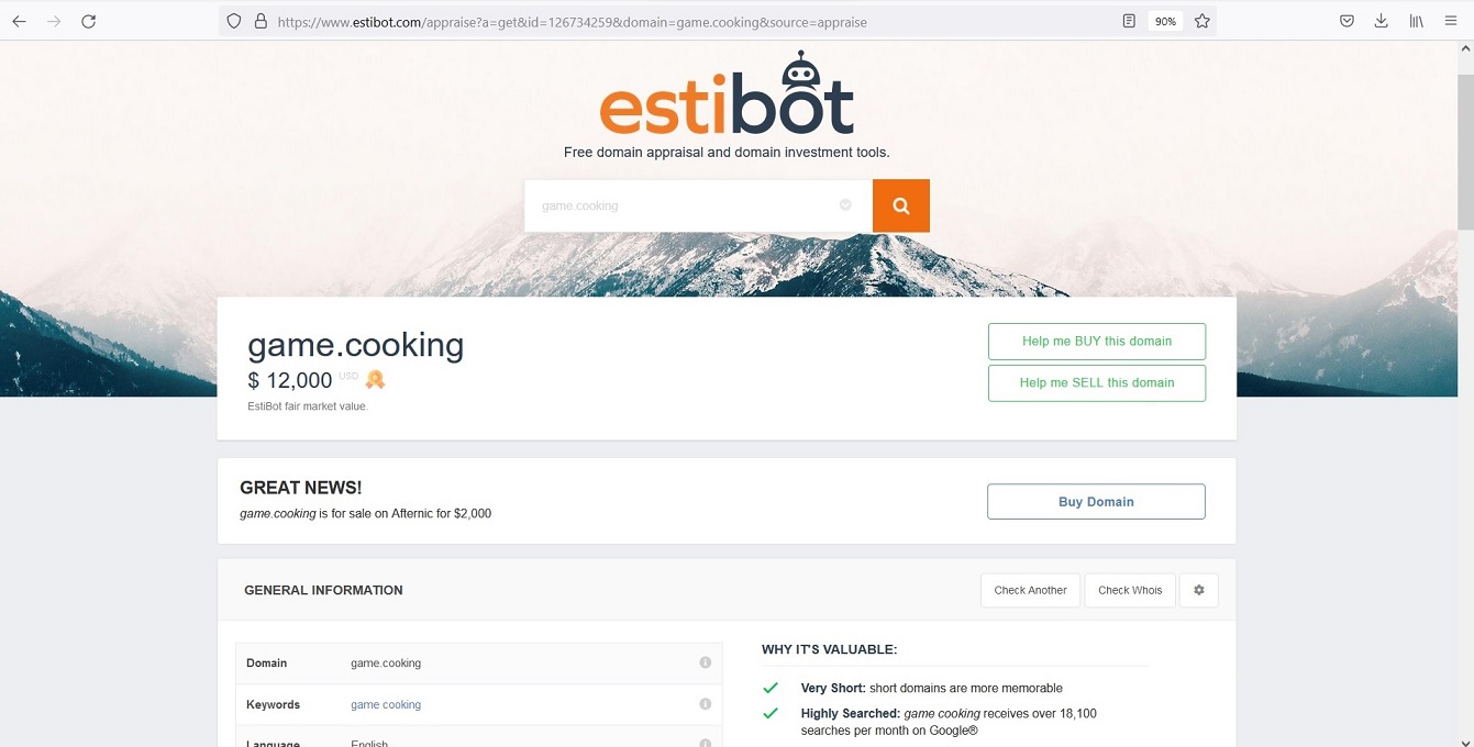 Домен: game.cooking- Отличный короткий домен для игрового сайта.