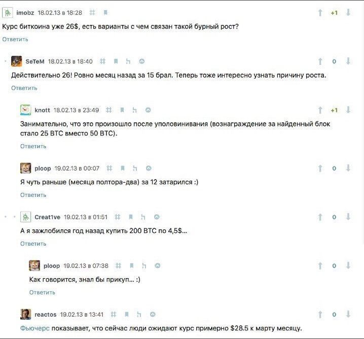 ![]() Короче, зафлудили мы тему. По теме, читал предпосылки, что биткоин может стоить 1 млн. долларов. Как думаете, реально такое? Представьте чувства тех, у кого был 1 биткоин и продал он его за 8000$ радуясь навару, а через 4 года стоимость 1 биткоина будет 1 млн. долларов.